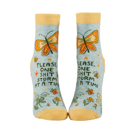 Say it with your socks. Give your feet ( and your sanity) the attention they deserve with pretty floral socks with a bit of an attitude. Blue Q donates 1% of the sales of these socks to Doctors Without Borders. Fits women's shoe size 5-10. Content: 50% combed cotton, 48% nylon, 2% spandex.