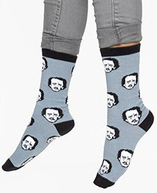 "Socks for your midnight dreary. Only socks, and nothing more." Get literary with Edgar Allan Poe-ka dots on these light gray crew socks from Out of Print. And even better, every purchase donates one book to a community in need. 75% cotton, 20% polyester, 5% spandex. Fits approximate women's shoe sizes 5.5–9.