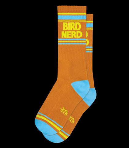 These super-comfy, unisex, one-size-fits-most, Gym Socks are made in the USA of Butterscotch colored Cotton with accents of Turquoise blue and lemon yellow.