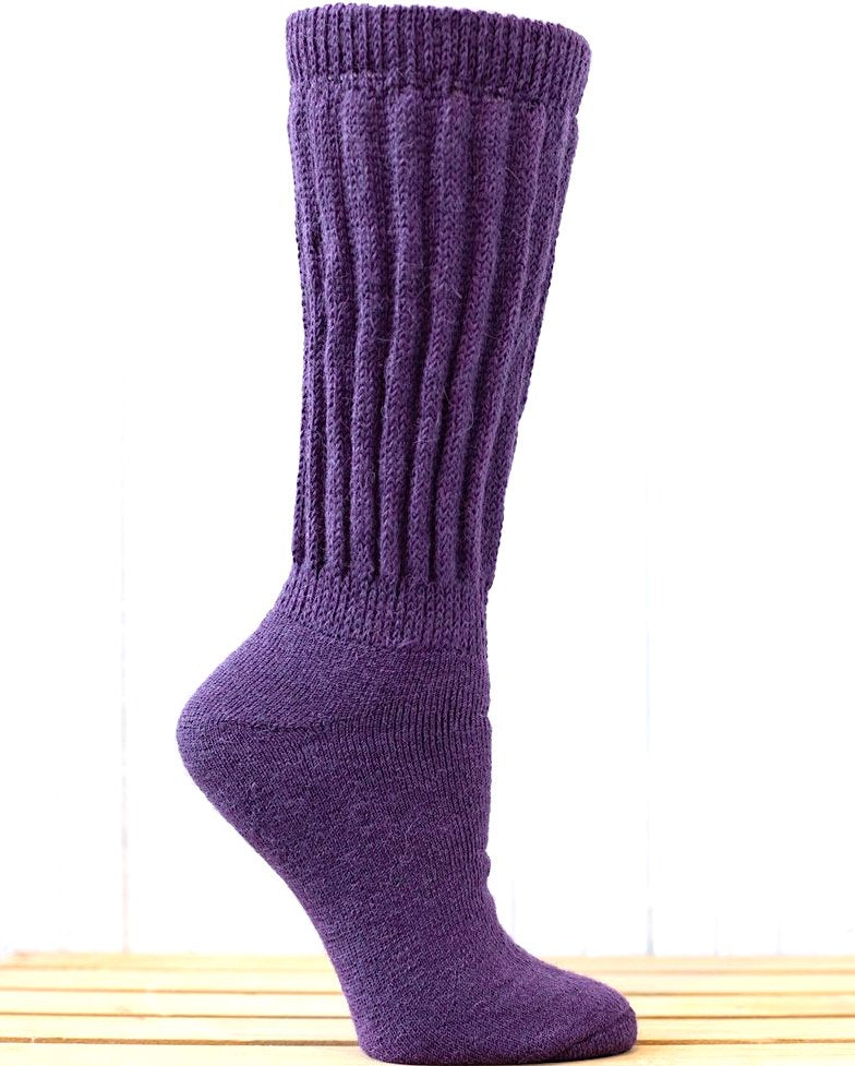 Solid Rib (Purple) Alpaca Comfort Cuff Crew Socks