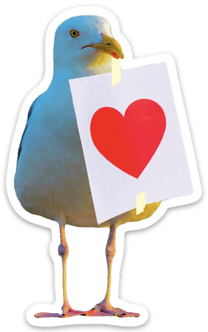 Ever been in our beloved Portland on Valentine's Day or right after? You've no doubt noticed the big red hearts ❤️ all over the city. Since 1976 Portland Maine has been plastered in hearts in the dark hours leading to dawn on Valentine's Day by an anonymous entity known as The Valentine's Day Bandit and their team of bandits. Sadly, Our Valentine's Bandit passed away in 2023, we miss you Kevin. Thank you for bringing so much magic and love to our community. Spread some of that Kindness and love with Patrick The Seagull, Valentine's Bandit sticker. Perfect for water bottles, laptops, cars, bikes and more! Original photography and design made in Maine. These stickers are made out of durable vinyl with a laminate that protects the sticker from scratches, rain and sunlight. Durability will vary based on surface placement, care, weather conditions, and exposure. Patrick The Seagull Sticker is handmade in the USA. Approximately 3.75" x 2.25"