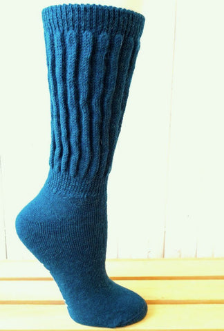 Solid Rib (Teal) Alpaca Comfort Cuff Crew Socks